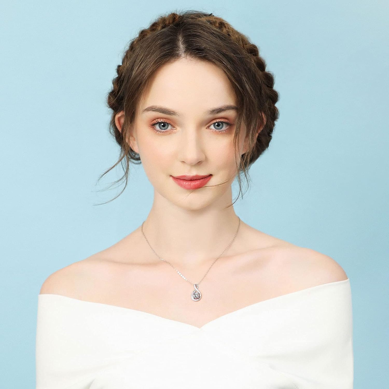 April Birthstone - Diamond Cubic Zirconia Sterling Silver Infinity Pendant Necklace. Featuring the birthstone for April, perfect for gift-giving or as a treat for yourself.