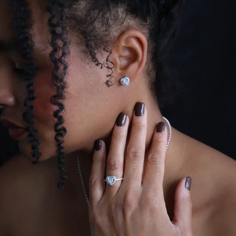Add a little sparkle and romance to your everyday look with our Cubic Zirconia Heart Earrings, crafted from 925 sterling silver. These dainty heart-shaped studs are set with brilliant-cut cubic zirconia, catching the light beautifully for subtle shimmer and timeless charm.
