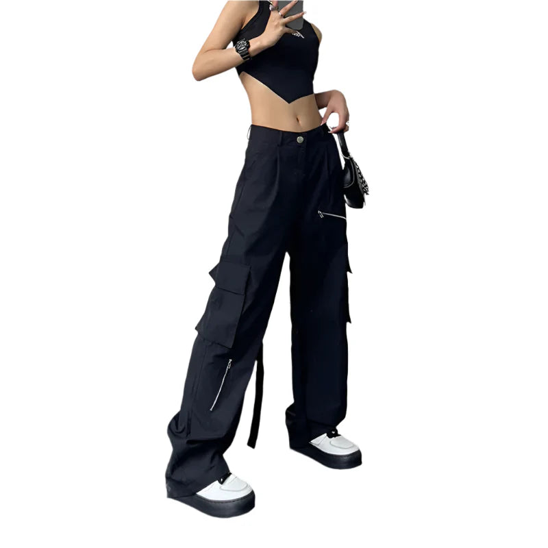 Punkshade Cargo pants bring playful punk vibes with comfy fleece cotton fabric. Featuring a mid waist, loose fit, and full length, these solid-colored cargo pants have fun fake zippers and pleated fronts—perfect for a cool summer look.