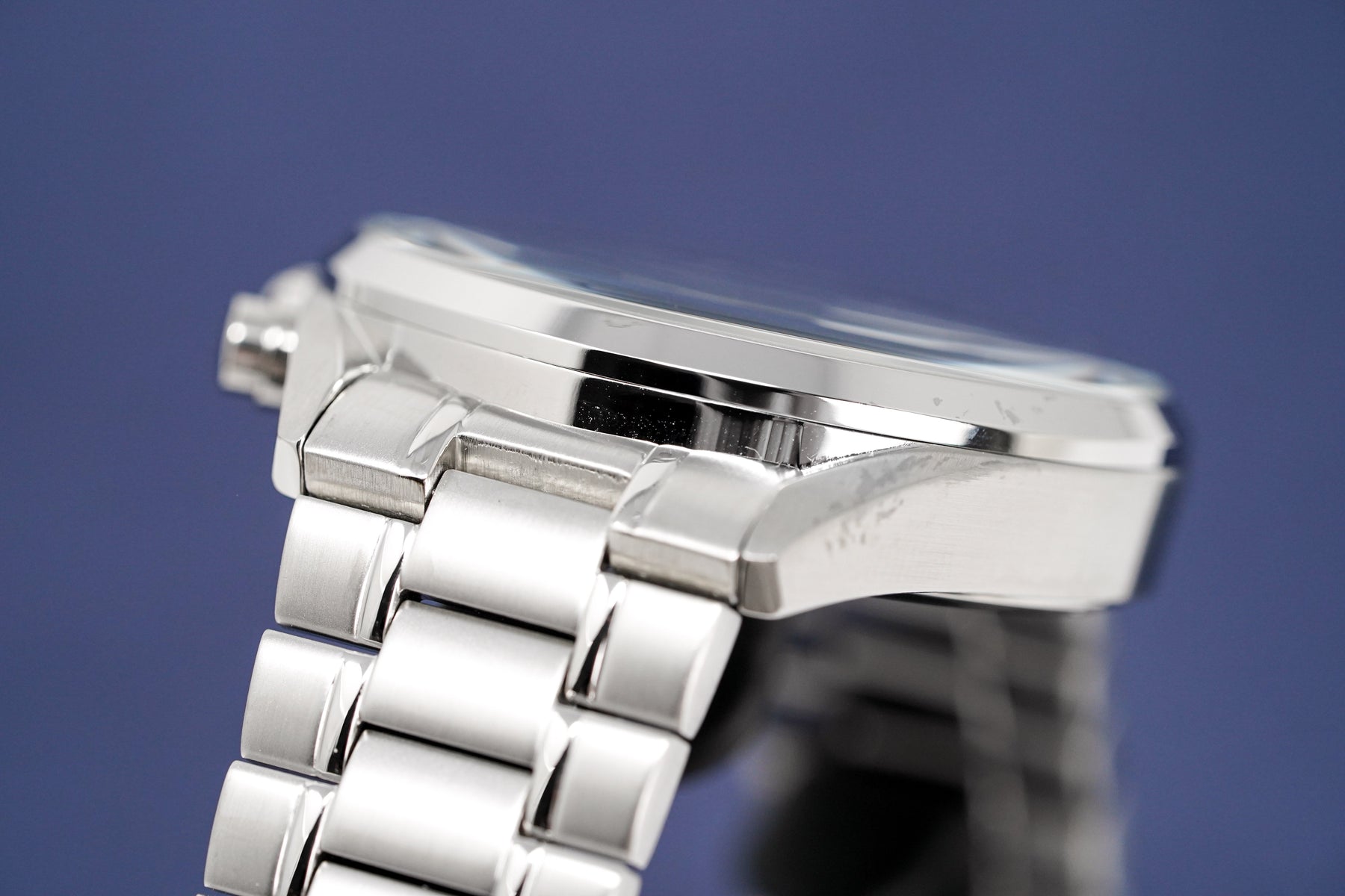 Blue Sunray Dial – Features **three chronograph subdials, silver-tone hands, and luminous markers** for excellent readability.