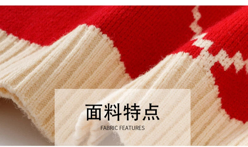 Christmas Sweater for The Whole Family Happy New Year Knit Tops Mum and Daughter Matching Red Jumper Dad and Son Black Knitwear