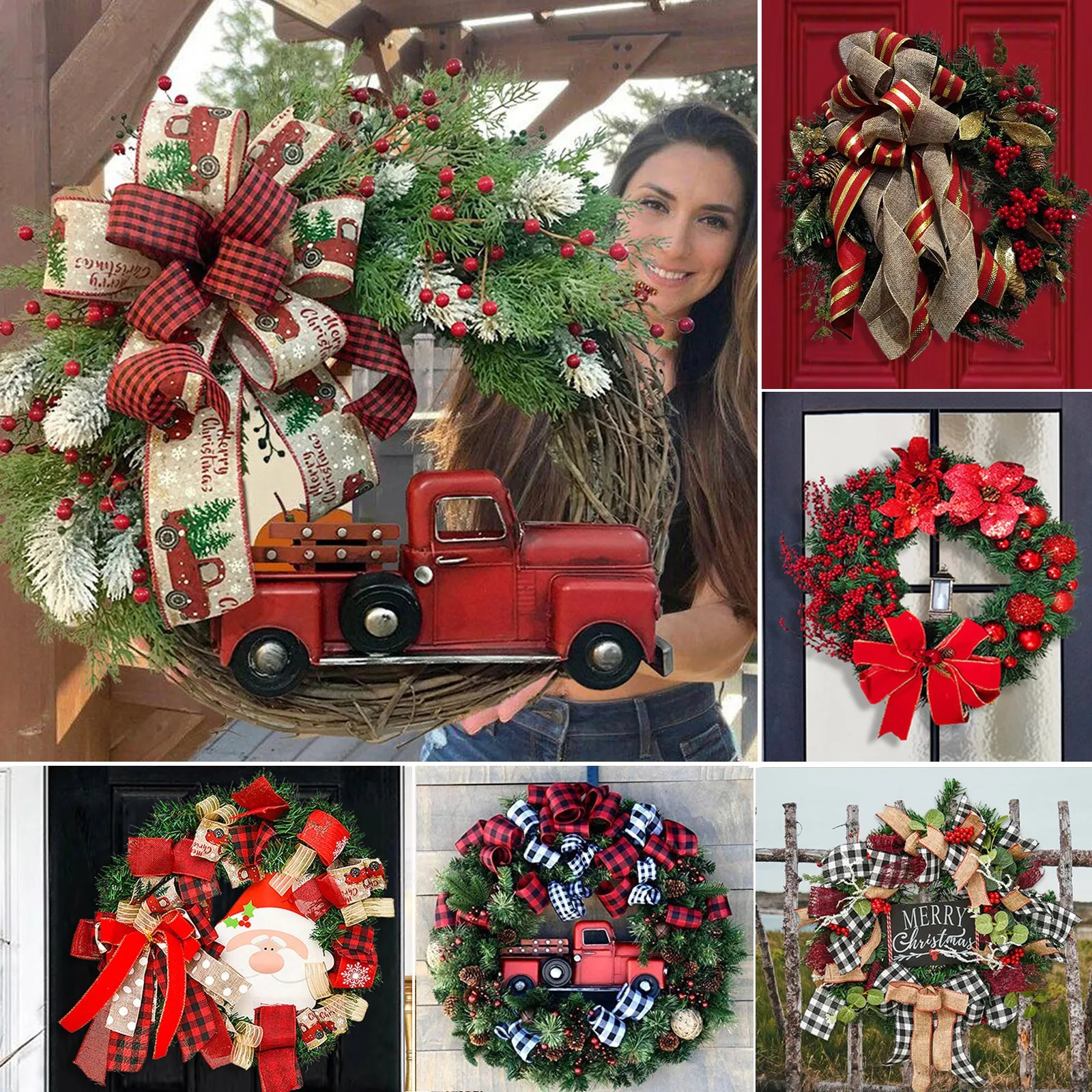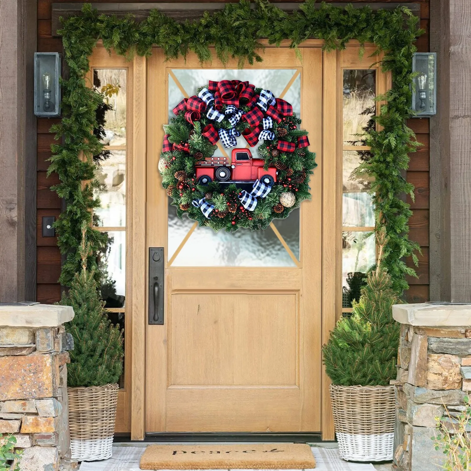Christmas Wreath Door Decoration with Snowflake Merry Christmas Flower Simulation Door Hanging Decoration Home Party Supply